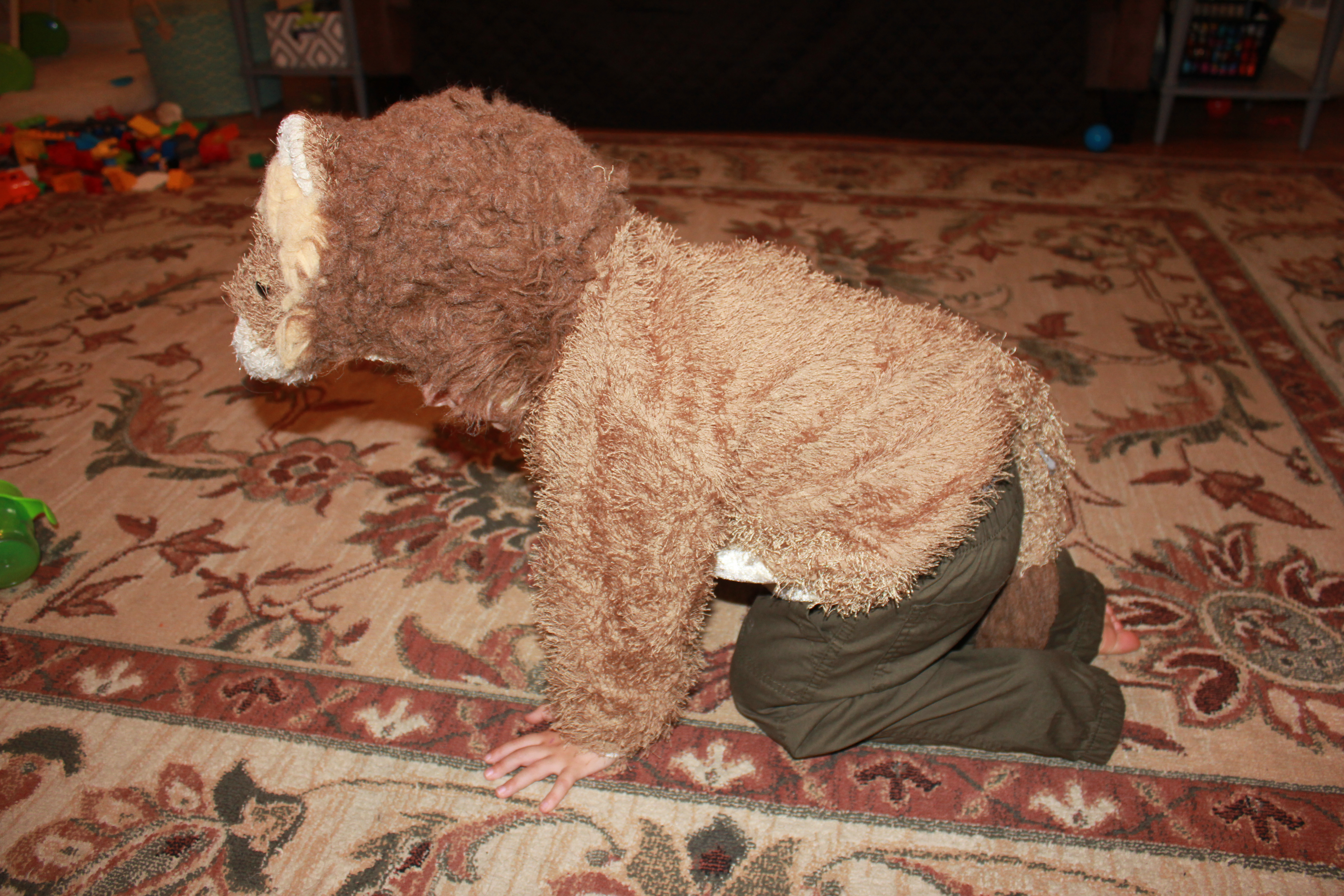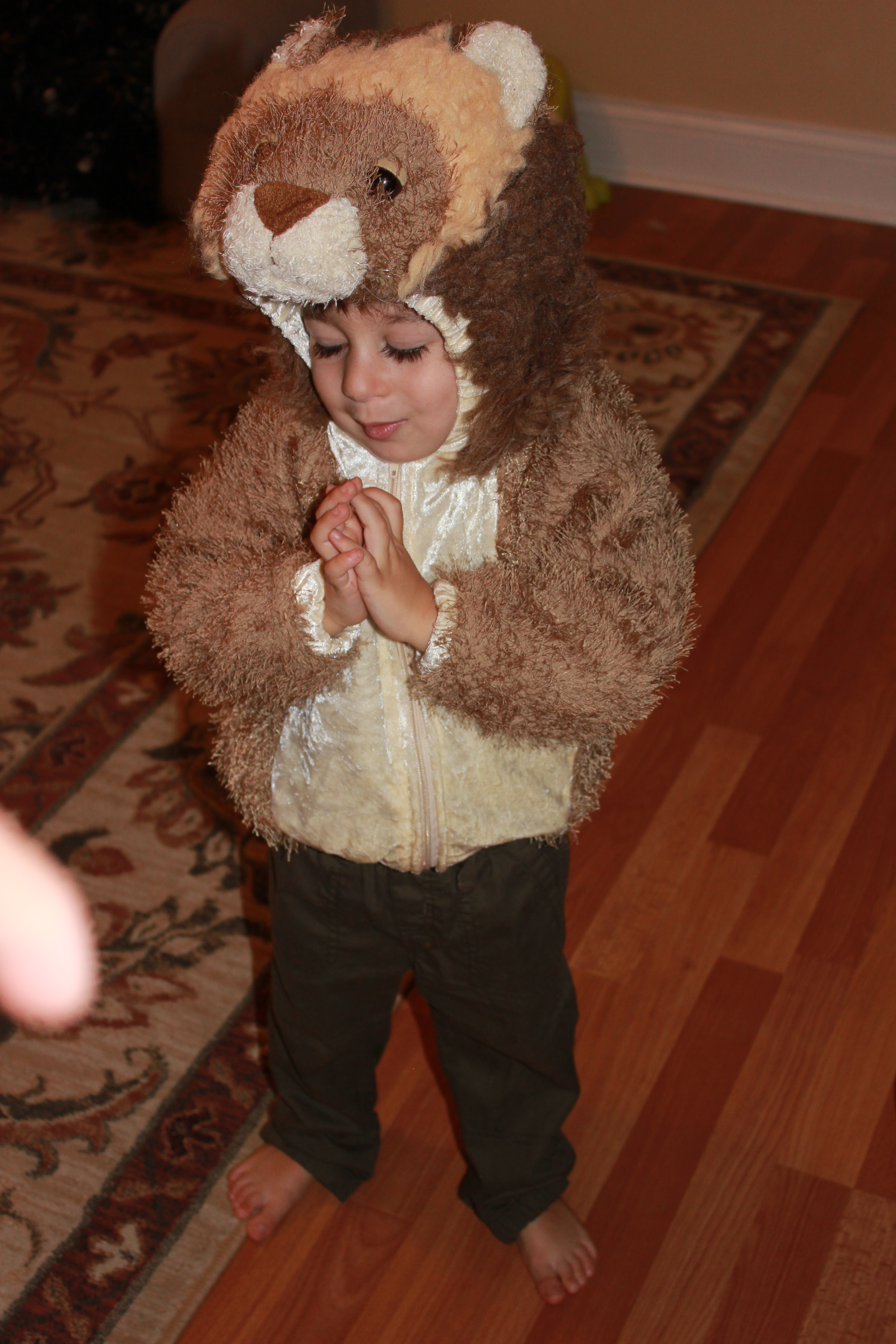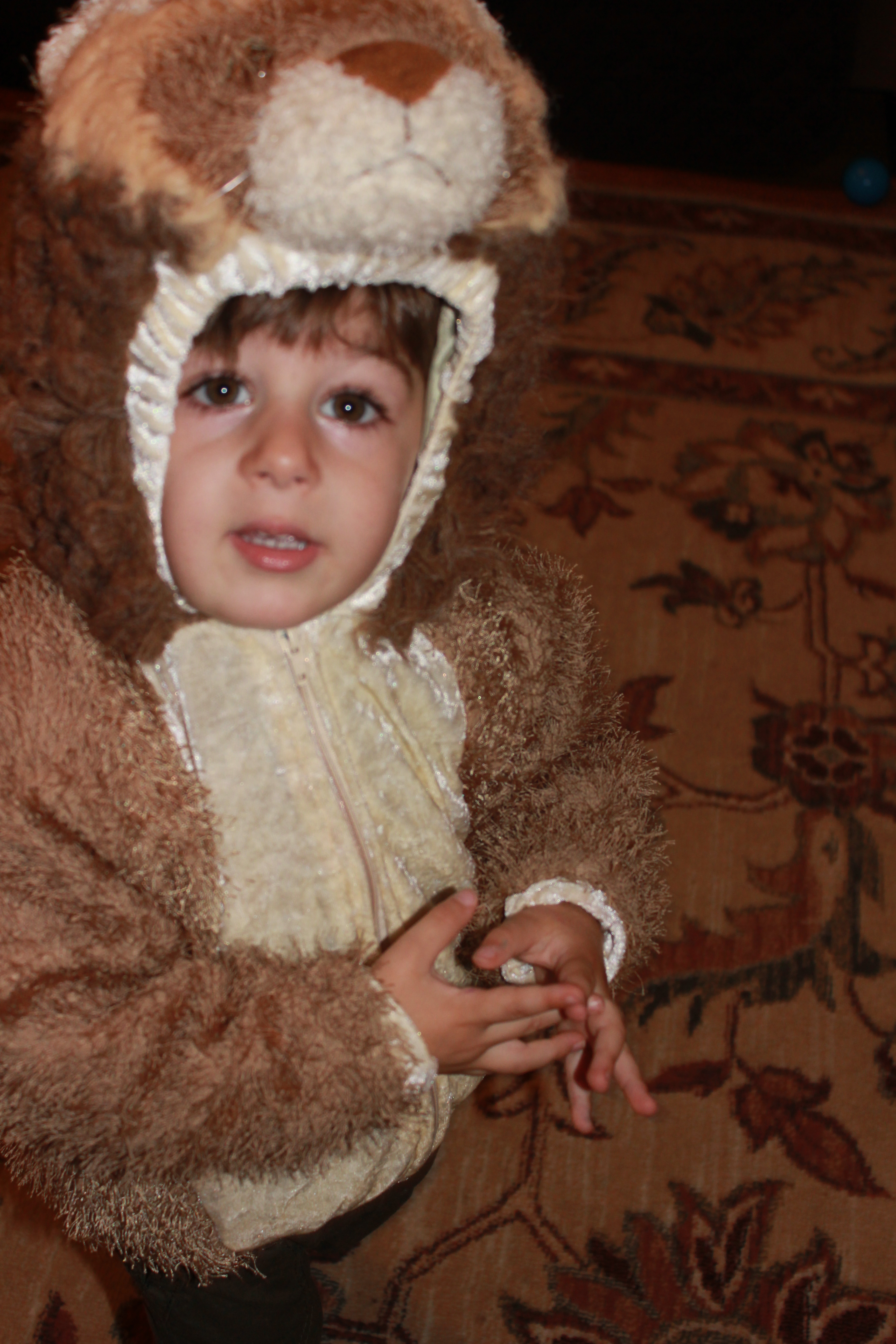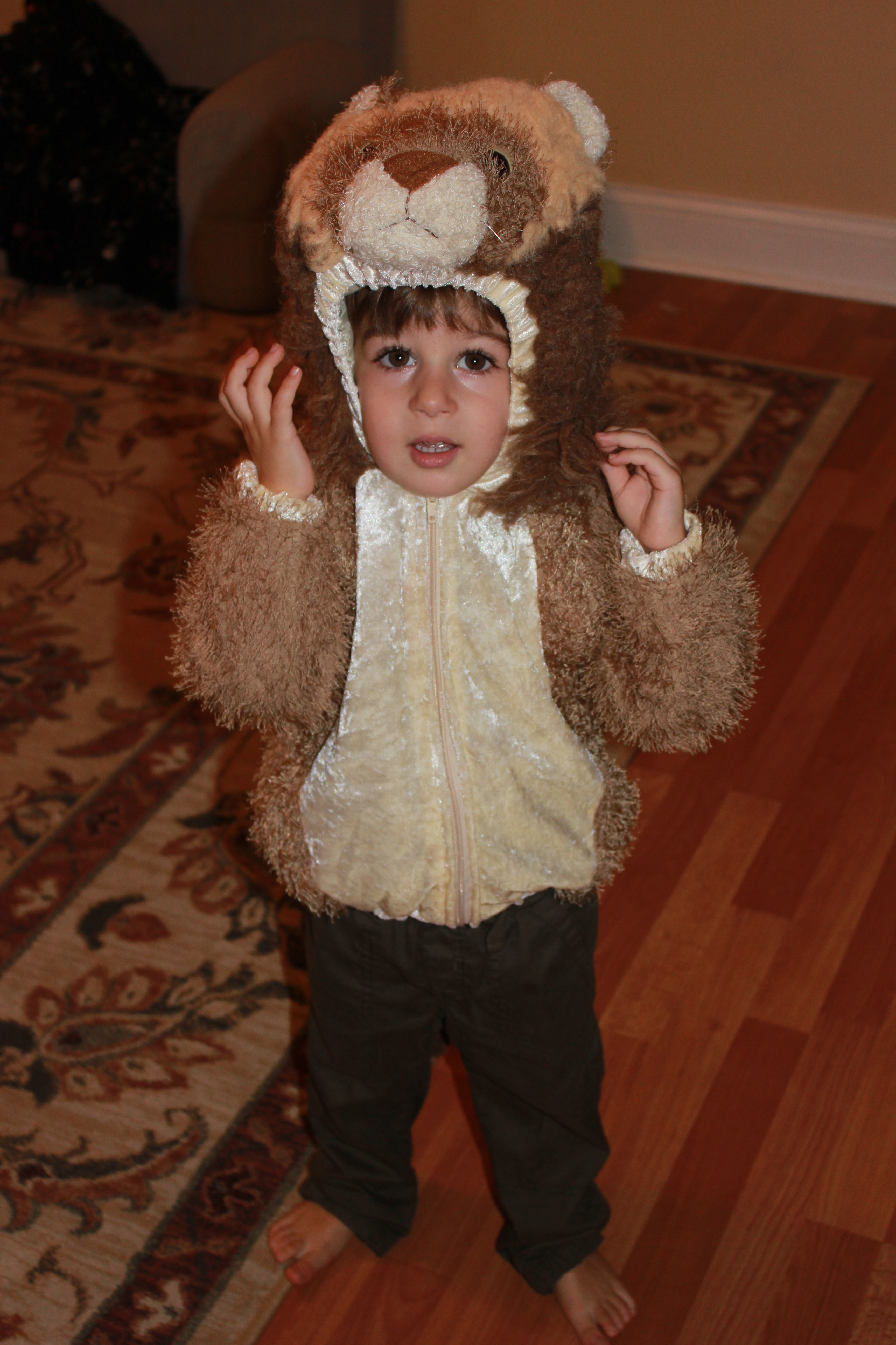 We had so much fun! We then went to the living room and acted like cats! I suddenly remembered I had picked up a lion costume last year at the thrift store.