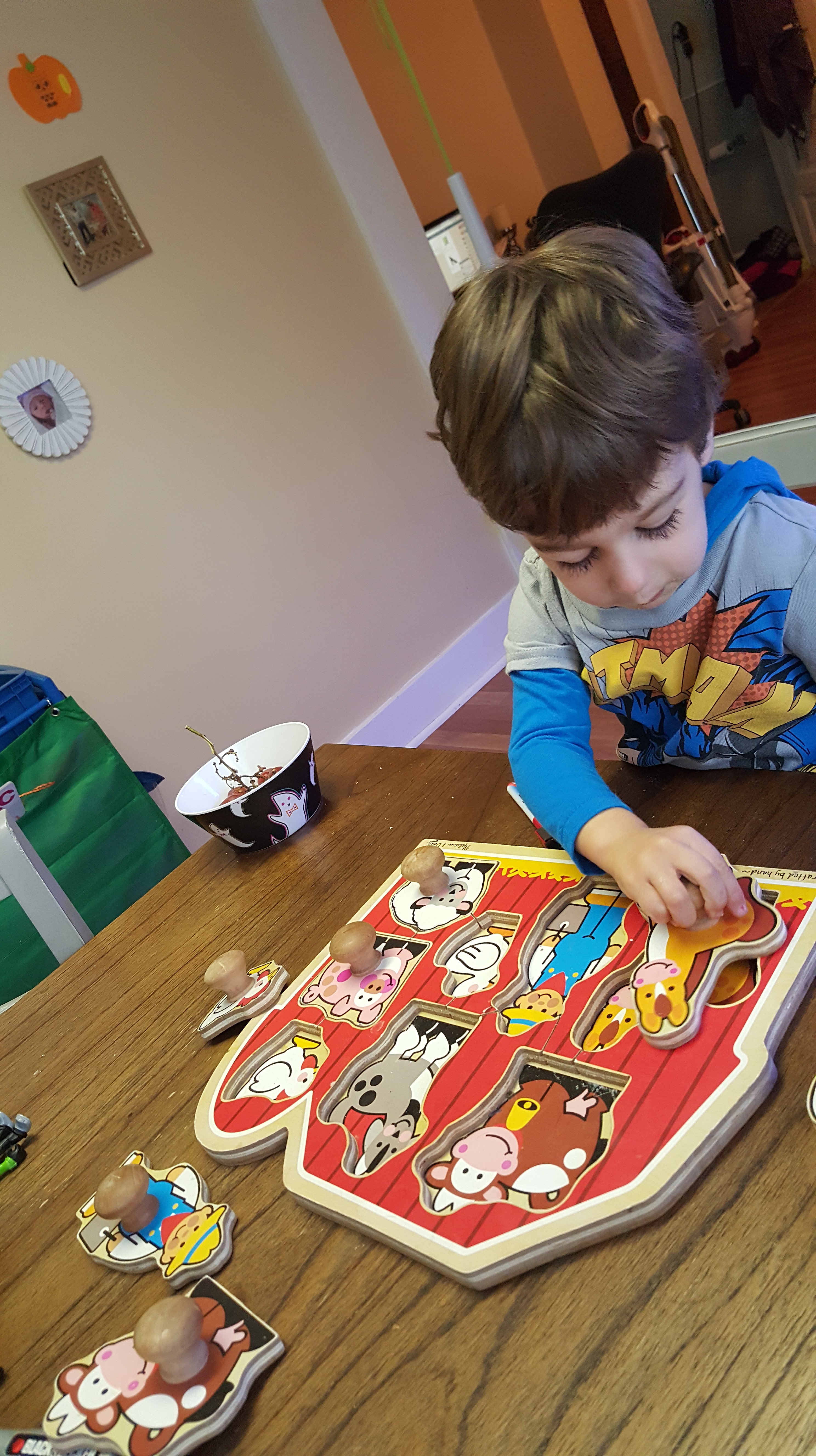 J loves puzzles. I already had a farm puzzle on hand, and even though he’s put this together a million times, he still enjoyed doing it again